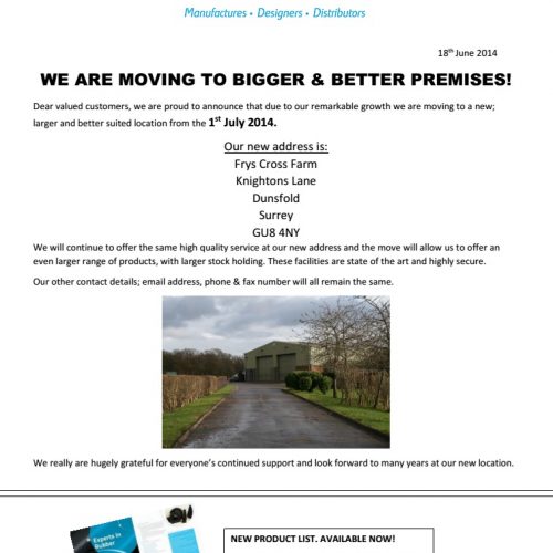 WE ARE MOVING TO BIGGER & BETTER PREMISES – CLICK HERE TO OPEN NEWS LETTER.
